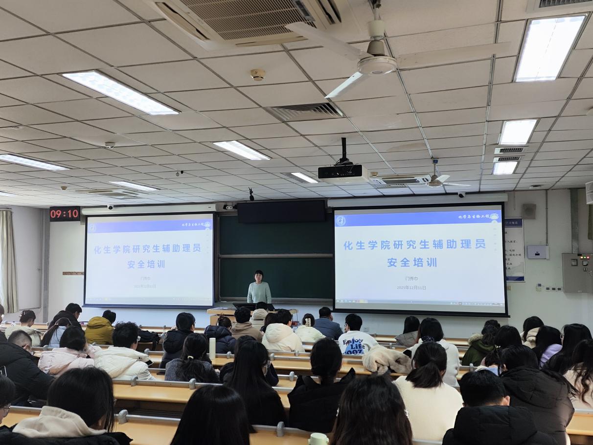 太阳成集团tyc972812月11日上午组织开展了面向全院实验室研究生管理员的安全培训。学院副院长王东瑞、实验室安全秘书门秀巾及全体研究生辅助管理员参加。